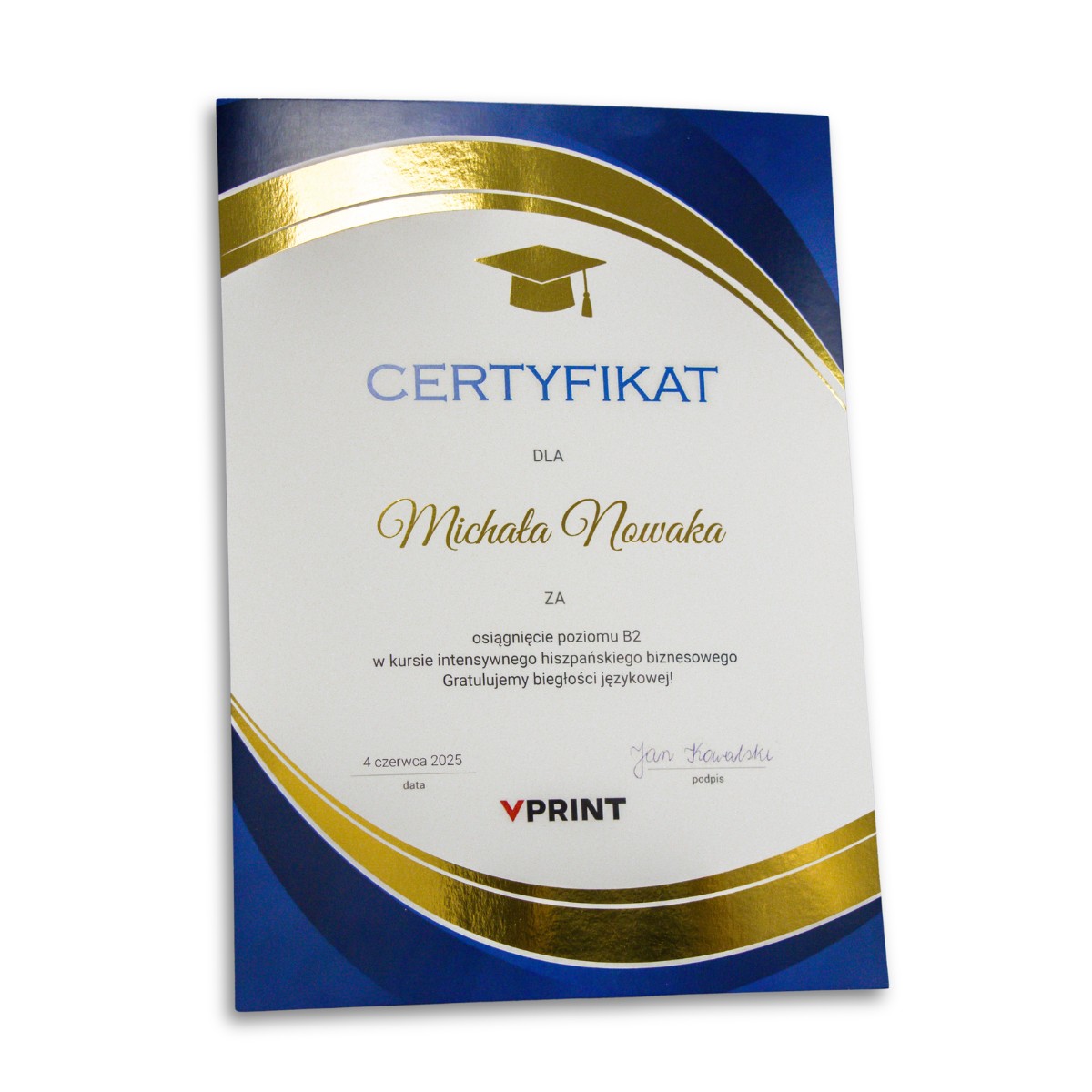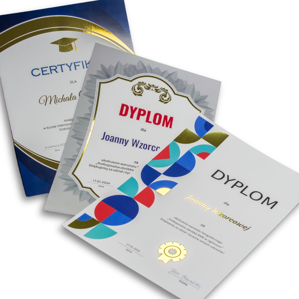 Wybierz profesjonalny druk certyfikatów i dyplomów online, które w pełni dopasujesz do prestiżu swojego wydarzenia dzięki gotowym szablonom i błyskawicznej personalizacji z plików Excel lub CSV. Oferujemy trzy standardy wykończenia: od klasycznej elegancji na papierach ozdobnych, po luksusowe uszlachetnienia złotą folią i aksamitnym laminatem SoftTouch. Dzięki naszemu doświadczeniu w poligrafii od 2014 roku, dostarczamy wyróżnienia, które nie tylko potwierdzają sukces, ale stają się trwałą i estetyczną pamiątką dla każdego uczestnika. To idealne rozwiązanie dla szkół, firm szkoleniowych oraz organizatorów konkursów, którzy cenią najwyższą jakość i oszczędność czasu.