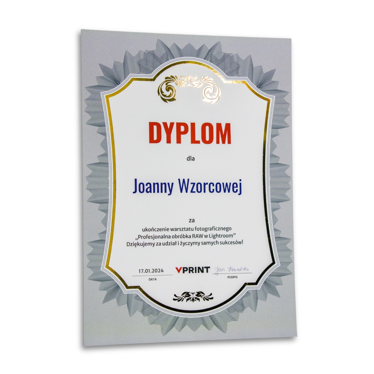 Podnieś rangę swojego wydarzenia dzięki dyplomom uszlachetnionym wybiórczo złotą, srebrną lub miedzianą folią. Gruby papier (300g) w połączeniu z metalicznym blaskiem sprawia, że każde wyróżnienie nabiera wyjątkowego charakteru i staje się dumnie prezentowaną pamiątką.