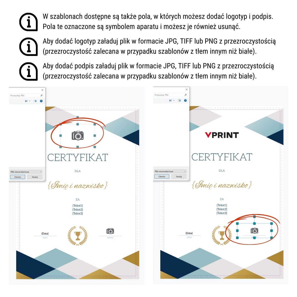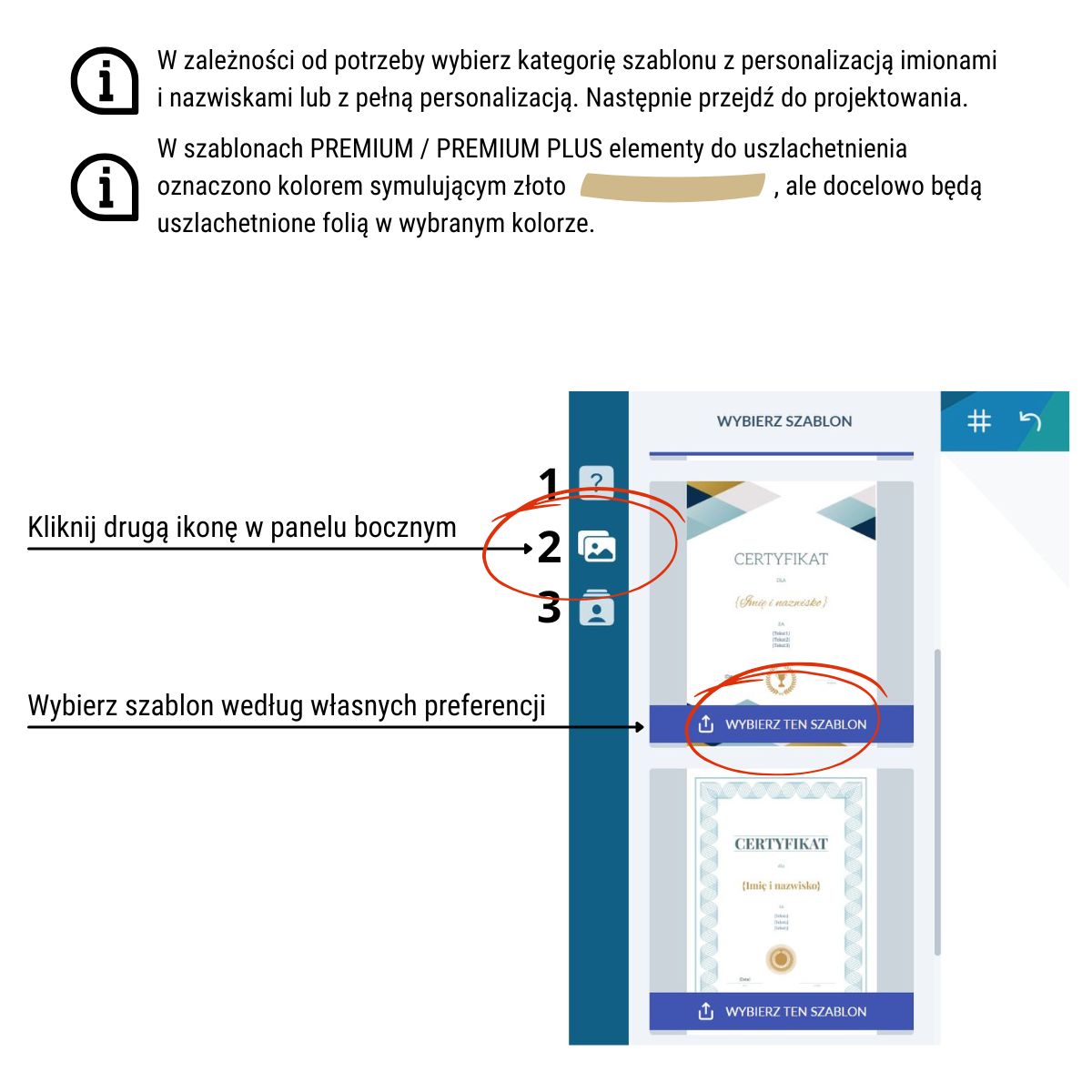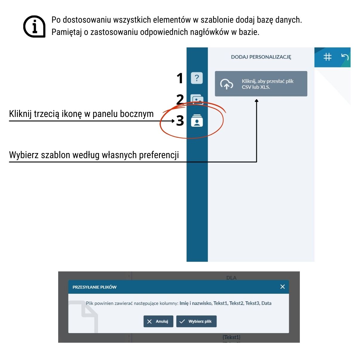 Skorzystaj z gotowych szablonów na różne okazje i wydarzenia, a następnie dodaj personalizację z bazy danych Excel lub CSV. W ramach personalizacji możesz dodać imiona i nazwiska, własne teksty oraz daty i podpisy.